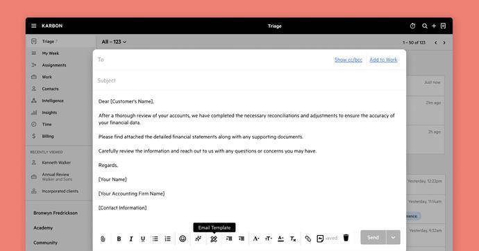 Synchronize your Karbon contacts with VXT, and automatically generate work items and contact notes from calls. In other updates, easily access KPI workbooks on the intelligence tab and harness the power of AI in email and tasks.