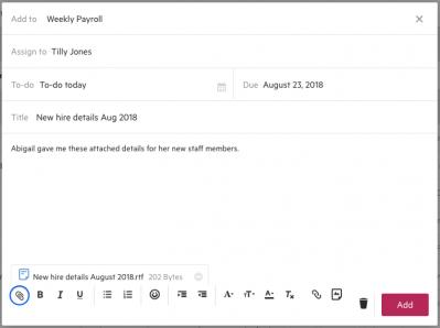 By popular demand, we've added the ability to attach files to your internal notes. It's as simple as attaching a document to an email, and is a really easy way to share files with your team or add them to a contact or work timeline.