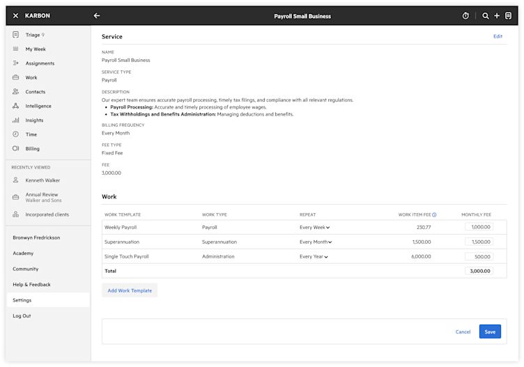The Service Library is the first Engagements feature being developed and will soon be available for beta testing. In the Service Library, you can create your firm’s service lines and link service types, work templates, and fees to those services.