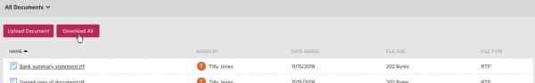 We have added the ability to bulk download every file listed under a contact or work item's Recent Documents. Choosing this option will download all saved files to your device (excluding any files that have been archived) as one single ZIP file.
