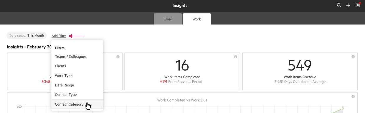 Two new filters have been added to Insights: Contact Type and Contact Category.
