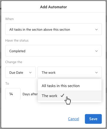 Now, you also have the option to automatically update the due date or assignee of a task section, or the entire work item.