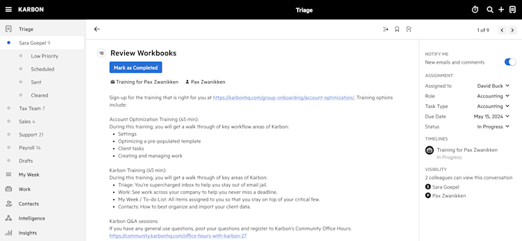 Use Karbon AI’s email brand tone feature to ensure consistent and high-quality communication across the firm.