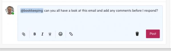You can now send an email comment or note to everyone in your firm at once, by mentioning @all in your message
