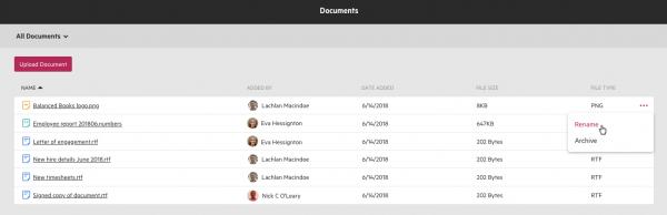 Documents that are saved against work items or contacts now display a bit differently. Some improvements have been made to show you more information at-a-glance, allow you to sort the files, and view archived files.