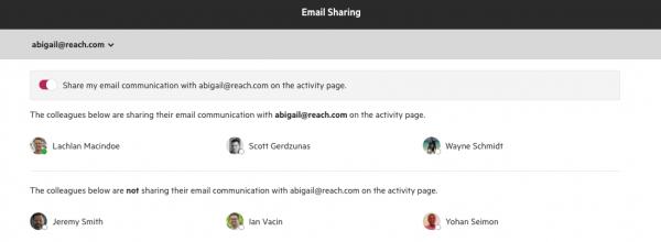 At the top of each contact timeline, you'll now be able to see who on your team has chosen to share their email with that client (as well as those who are not sharing email communication)