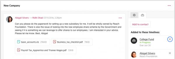 If an email is attached to the wrong Work or Contact timeline, you can now quickly remove it by clicking X from the email’s timeline tray.