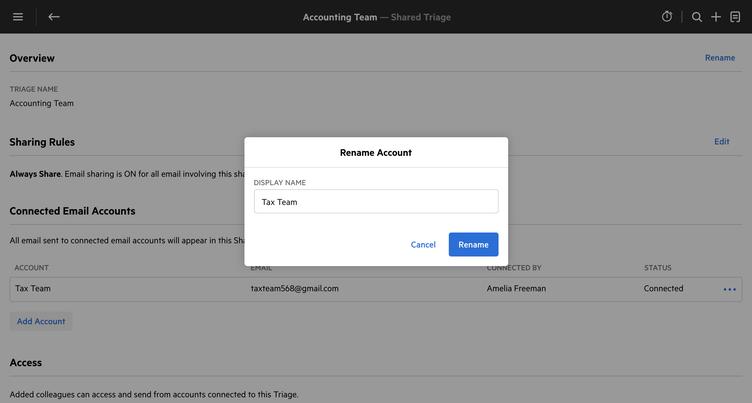 You can now change the display name of an email account after connecting it in Shared Triage, directly from Karbon.