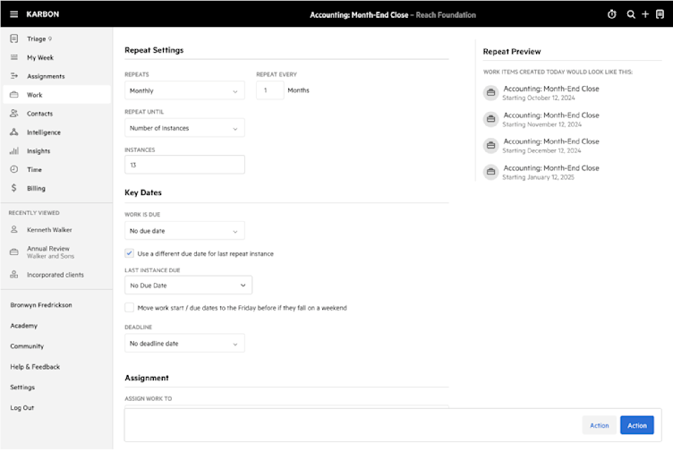 Use the Client Communication KPI Workbook to visualize email activity and improve client service. This update also adds AI summaries for work timelines, repeating work improvements, and UK direct debit.