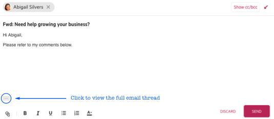 Now when you reply or forward an email, you’ll see “3 dots” that can you click on to expand and view the full email thread.