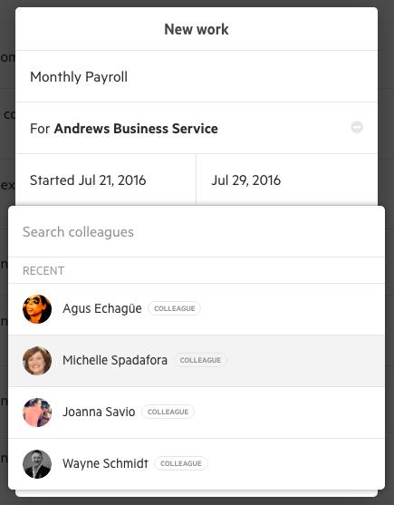 Recent list on assignments Now when you go to assign something to your colleague, we show your recent people list. You can also use your keyboard to select the assignee from this list—simply use your arrows to move down the list and hit “enter/return” to select whom you want to assign the work to.
