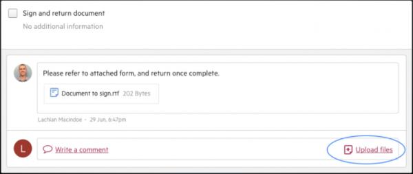 Rather than adding a file to a comment, you and your clients will see a new upload link, which makes it much clearer when a file has been properly added.