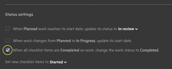 You can now choose to automatically mark work as completed when all its checklist items have been completed. To turn this on, go to ‘Workflow statuses’ in your Practice settings.