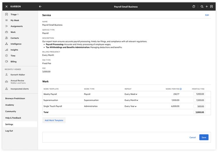 The Service Library is the first Engagements feature being developed and will soon be available for beta testing. In the Service Library, you can create your firm’s service lines and link service types, work templates, and fees to those services.