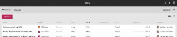 Work filters have been introduced to give you greater control to view only the work items that are relevant to you at any given time. Customize your view so that you can see what work needs your attention, hone in so you're only seeing jobs that match what you're looking for, and save your most-used views so that you can access them quickly again.