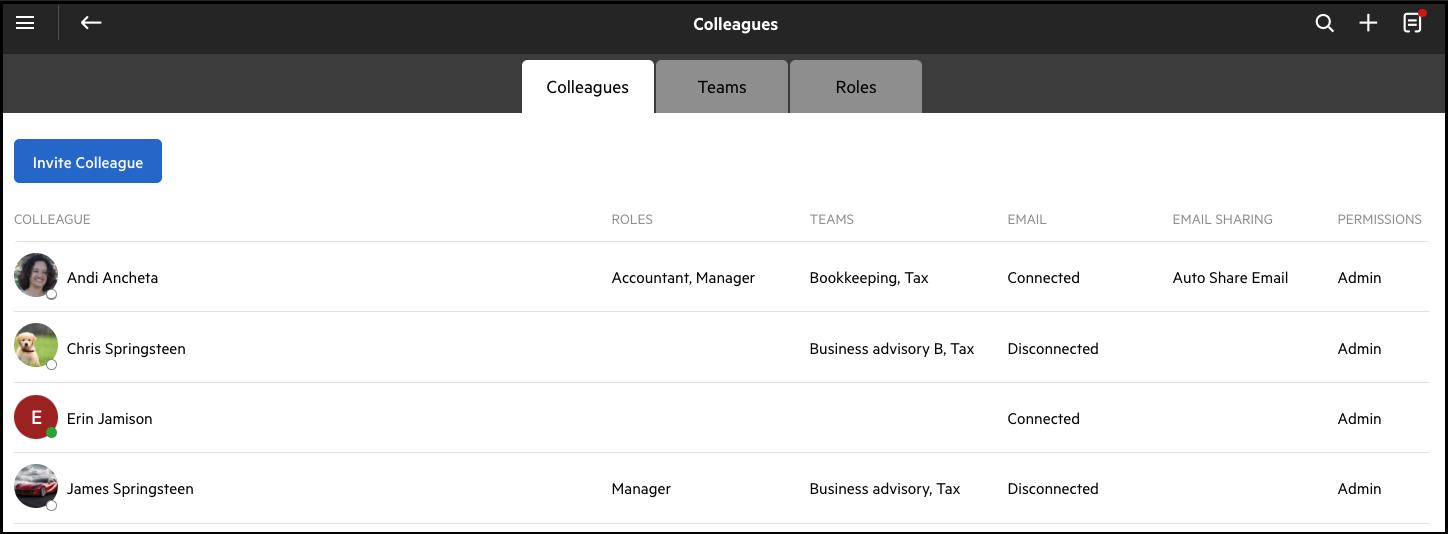 To check if your or your colleague's email has been disconnected, navigate to Main Menu > Settings > Colleagues, and view the 'Email' column.