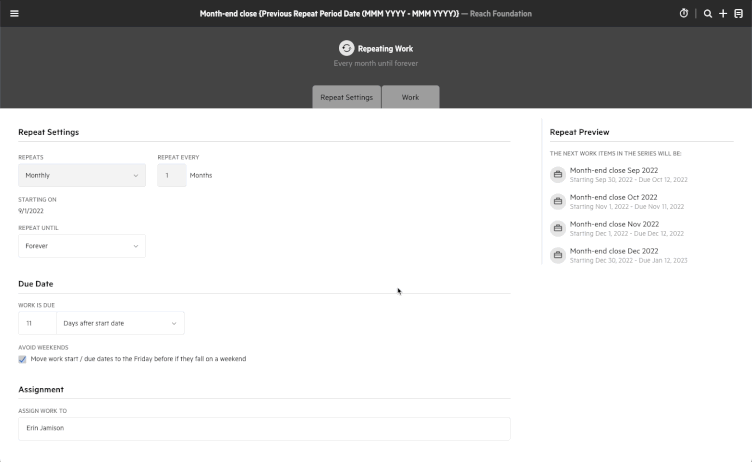 Repeating settings for work items is used to set and forget work items that need to be repeated on a regular basis. Document management users in Karbon, can automatically create the required folders in your Document management system and start copying work files when a repeating work item is started (ie. when tasks and budgets are created for the work). This will ensure that you are always on track with up-to-date information in your folders which avoids confusion, making it easier to navigate for everyone in your firm.