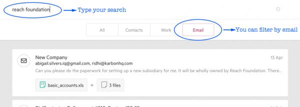 With the introduction of emails in the Global Search, you’ll also see: