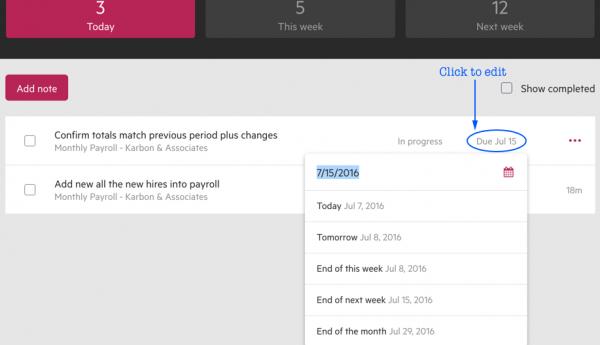 Quicker way to edit your To-do status and due date From your To-do list you can save time by editing the item’s status and due date from the list view.