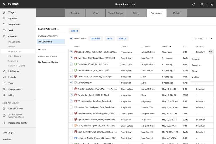 A new document sidebar is available to help you quickly view and locate client documents. This update enhances Karbon’s document management capabilities, especially for firms sharing and collecting files through the Karbon for Clients portal.
