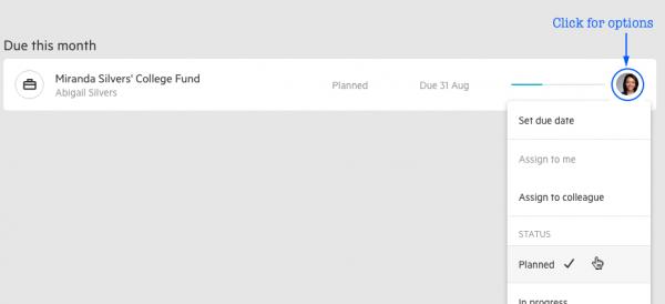Quick way to update work status and due dates from the Work list view