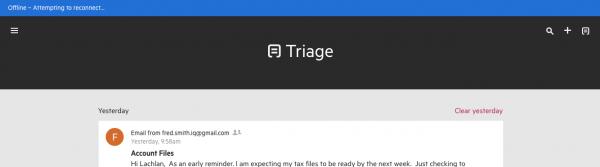 Now, if Karbon detects that your computer is not connected to the Internet, a banner will appear across the top of the app to let you know how to reconnect.