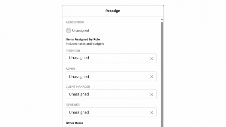 Streamline assignments across tasks and budgets created from templates to more easily identify and resolve unassigned items. With this enhancement, you can now efficiently bulk assign any unassigned tasks, budgets by role, automators, and timeline events.