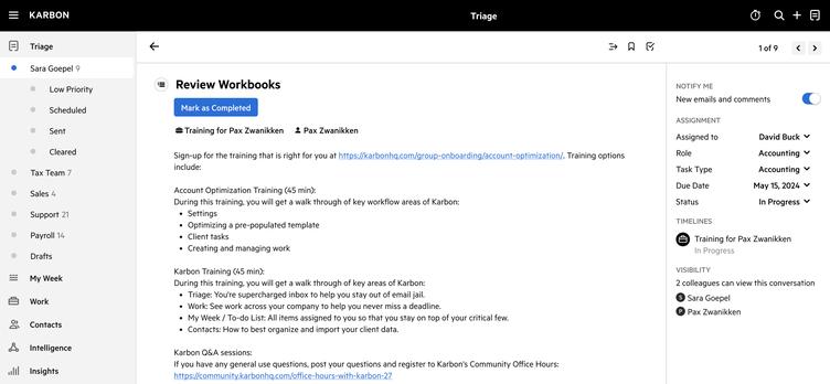 Use Karbon AI’s email brand tone feature to ensure consistent and high-quality communication across the firm.