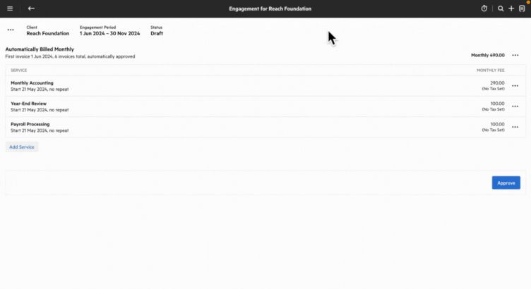 Once confirmed, you’ll see work items associated with the draft engagement available to be added to other engagements, or to be billed manually.