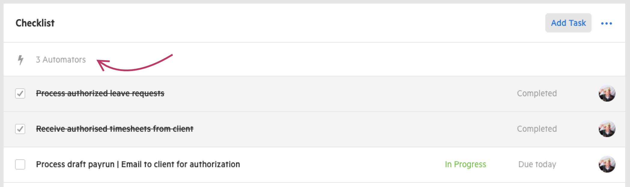 If you have been making use of Karbon's Automators, you've probably found that they can quickly take up space in your task list. To fix this, if you add more than one Automator within one section, they'll now appear collapsed. Clicking here will expand them.