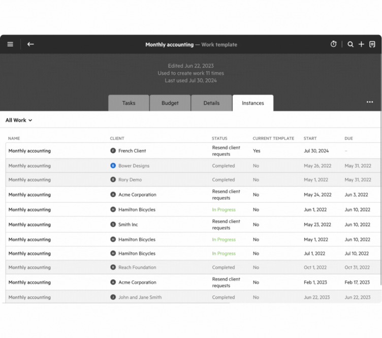 Move from client approval to productive work immediately. Once a client signs, their engagement becomes actionable work inside Karbon. Tasks, due dates, roles, assignees, and budgets are all pre-configured, helping your team start delivering immediately without workflow delays.
