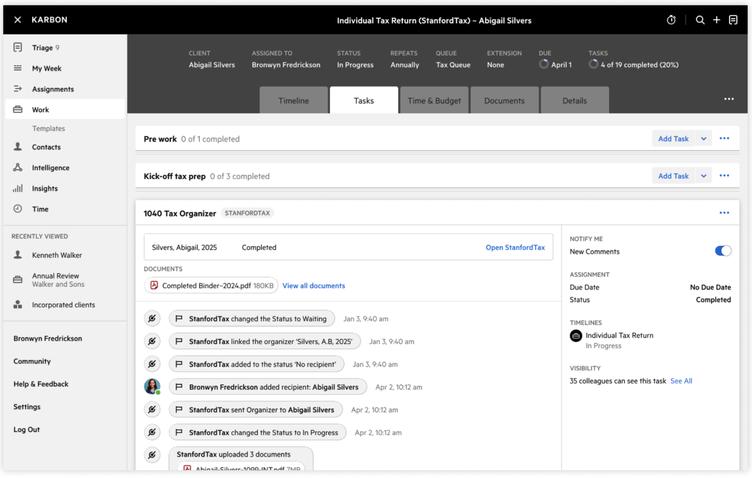Karbon’s integration with StanfordTax, a leading provider of tax organizers and workpapers in the US, is now launching in beta. This integration brings the full organizer experience directly into Karbon, giving firms a connected way to manage client intake, documents, and preparation workflows all in one place.