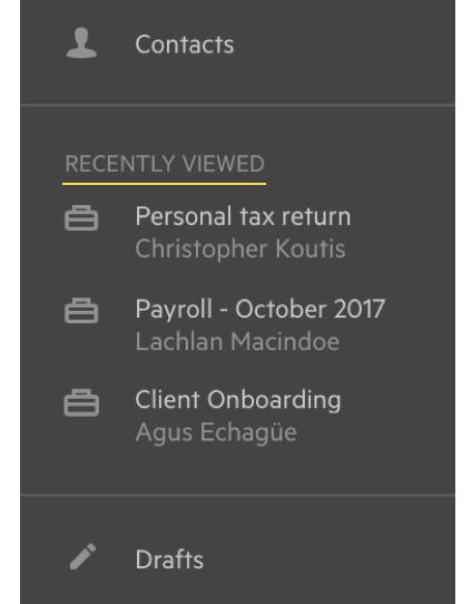 We've found that most Karbon users only work on a few pieces of work on any given day. So we have added a “Recently viewed” list to the main menu allowing you to jump easily between work with less clicks.