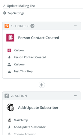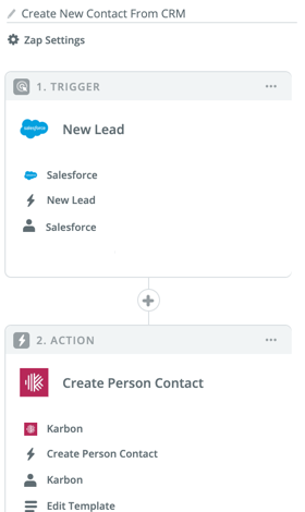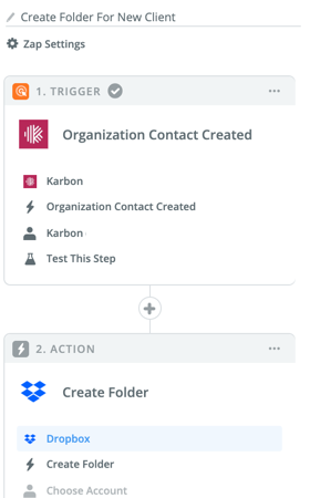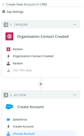 When you create a contact in Karbon, you can ensure that gets updated in your CRM too, by setting up another Zap with reverse steps. When you create an organization contact in Karbon, you can have a new account created in your CRM, like the example below.