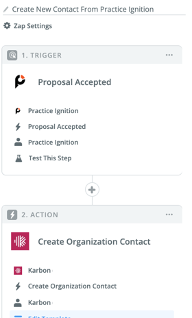 Karbon and Practice Ignition have a powerful integration that allows you to trigger your workflows in Karbon the moment a new client accepts a proposal in Practice Ignition. However, contact details are not currently imported through the integration. By setting up this simple Zap, you can solve that.