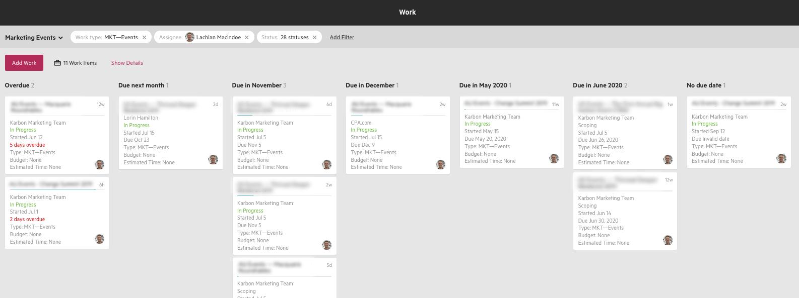 We do the same for other activities such as content, webinars, and other campaigns. Karbon keeps the marketing team’s workload organized and accessible.