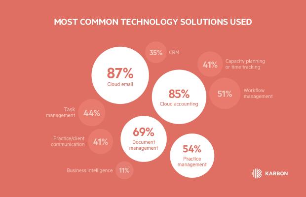 From the firms assessed, the most common technology solutions used by accounting firms are: