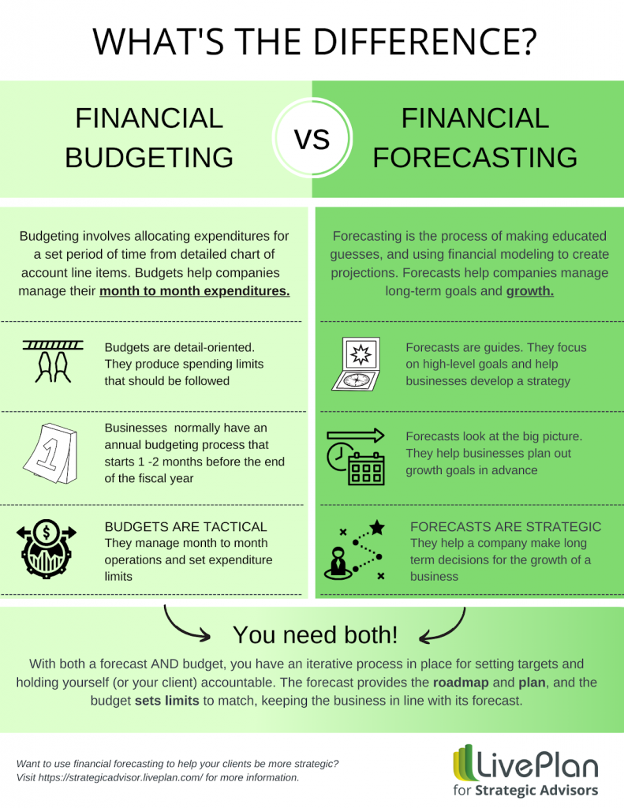If your clients are asking for help with budgeting, they may not appreciate the difference between an operational budget and a strategic forecast for long-term growth. Use that as an opportunity to flex your advisory muscles and teach them the difference.