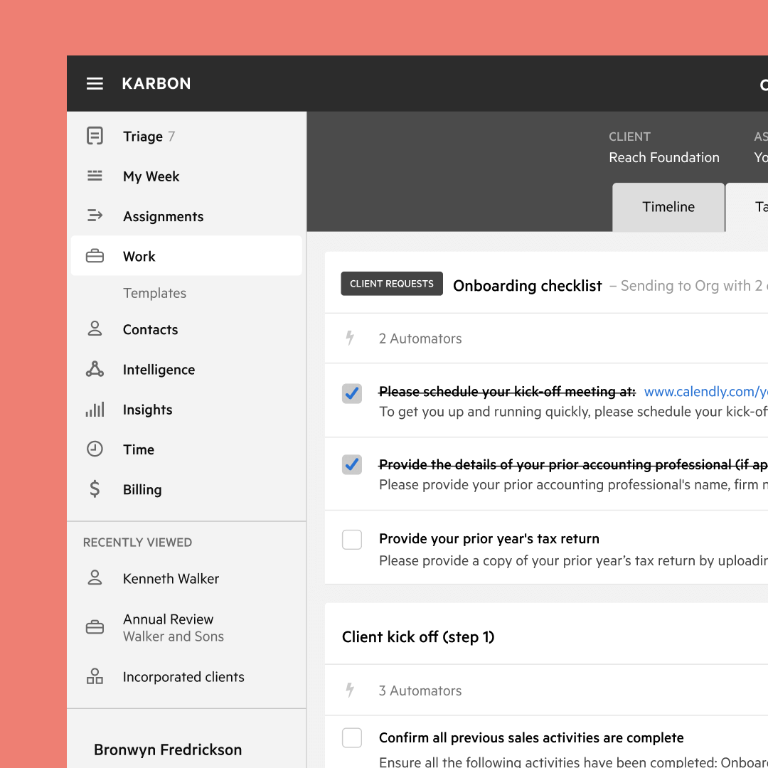 Work in Karbon is driven by standardized templates, ensuring processes don’t break and quality is maintained as your team evolves and your business grows.