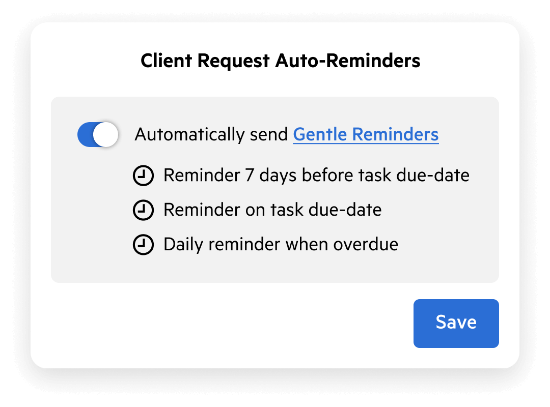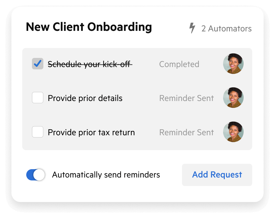 Let Karbon do all of the chasing for you by automating client requests and reminders. Clients become part of your workflow, so they know exactly what they need to action and you know what you are still waiting on.